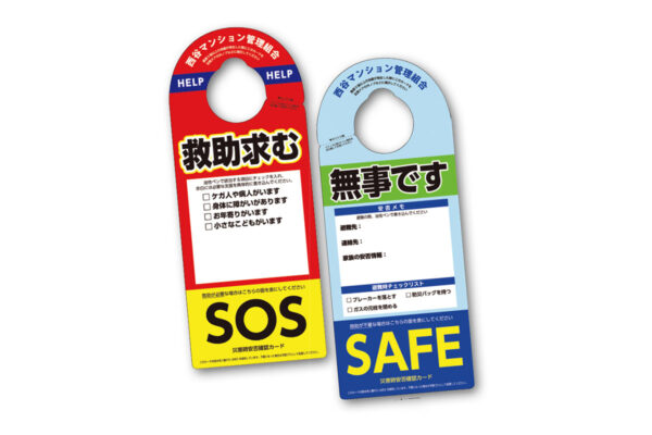 自宅玄関のドアなど外から見える場所に掲示することで、各家庭の安否状況を近隣住民や救助者に示すことができます。耐水性・耐久性に優れたLIMEXを使用しているので、雨の日でも問題なく使用できます。 商品番号 size 備考 […]