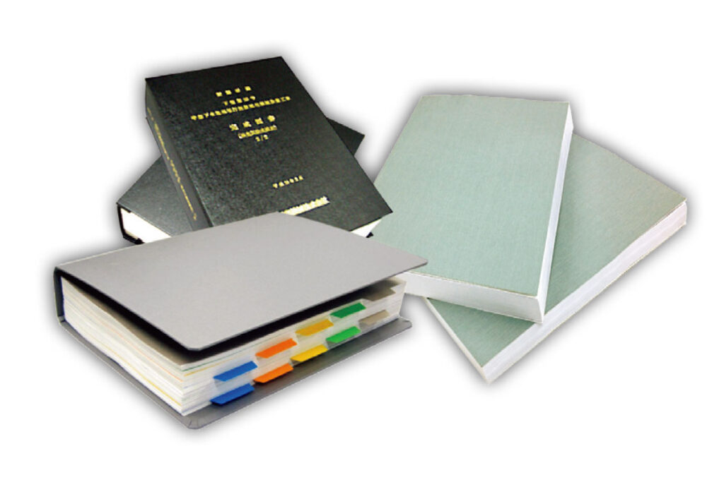 完成図書/竣工図書・図面製本・契約書製本・論文製本・写真集( レイフラット製本)・無線綴じ・中綴じまで、多種に対応できます。
