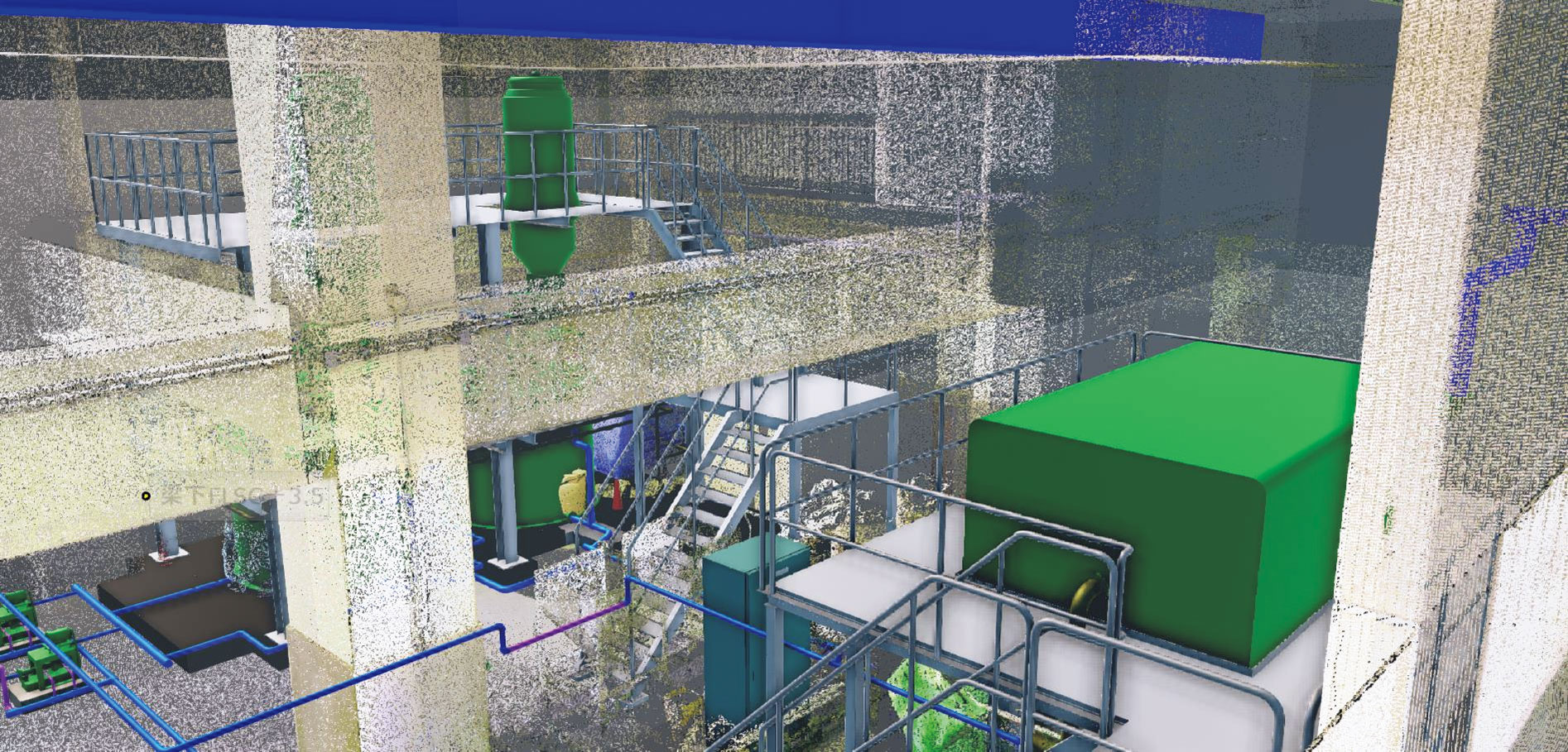 レーザーと360°カメラで撮影。フォトメトグラフィーによる3Dモデルの作成。施設や建物、設備の現場をVR化します。計測も可能。