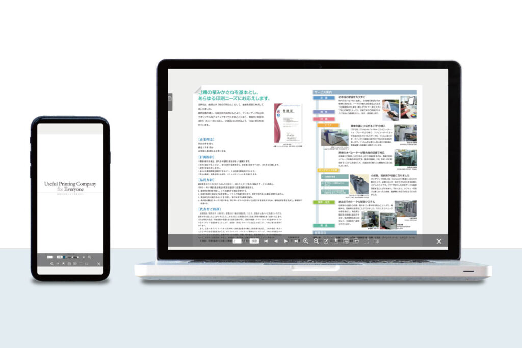 PC・スマートフォン・タブレットを利用して読むことができる冊子です。印刷物との併用で情報のアピール力が大幅アップします。